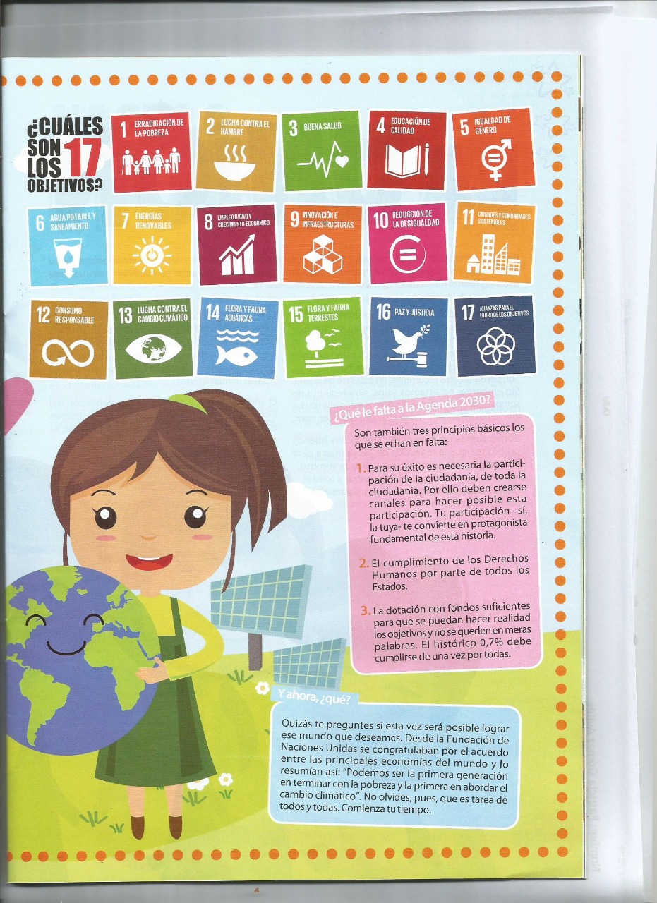 Este año 2015 es crucial para la Cooperación al Desarrollo y para la humanidad entera. Finaliza el plazo para el logro de los 8 ODM (Objetivos de Desarrollo del Milenio), que se habían establecido en el año 2000 y desde las Naciones Unidas se plantea un nuevo reto: la Agenda 2030 para el Desarrollo Sostenible, articulada en 17 ODS (Objetivos de Desarrollo sostenible) y 169 metas que demuestran la magnitud de esta nueva Agenda universal. La Agenda 2030es un nuevo plan de acción en favor de las personas, el planeta y la prosperidad. La erradicación de la pobreza en todas sus formas incluida la pobreza extrema y ellogro de la paz son los dos requisitos indispensables para lograr el desarrollo sostenible que se plantea en tres dimensiones: económica, ambiental y social.
